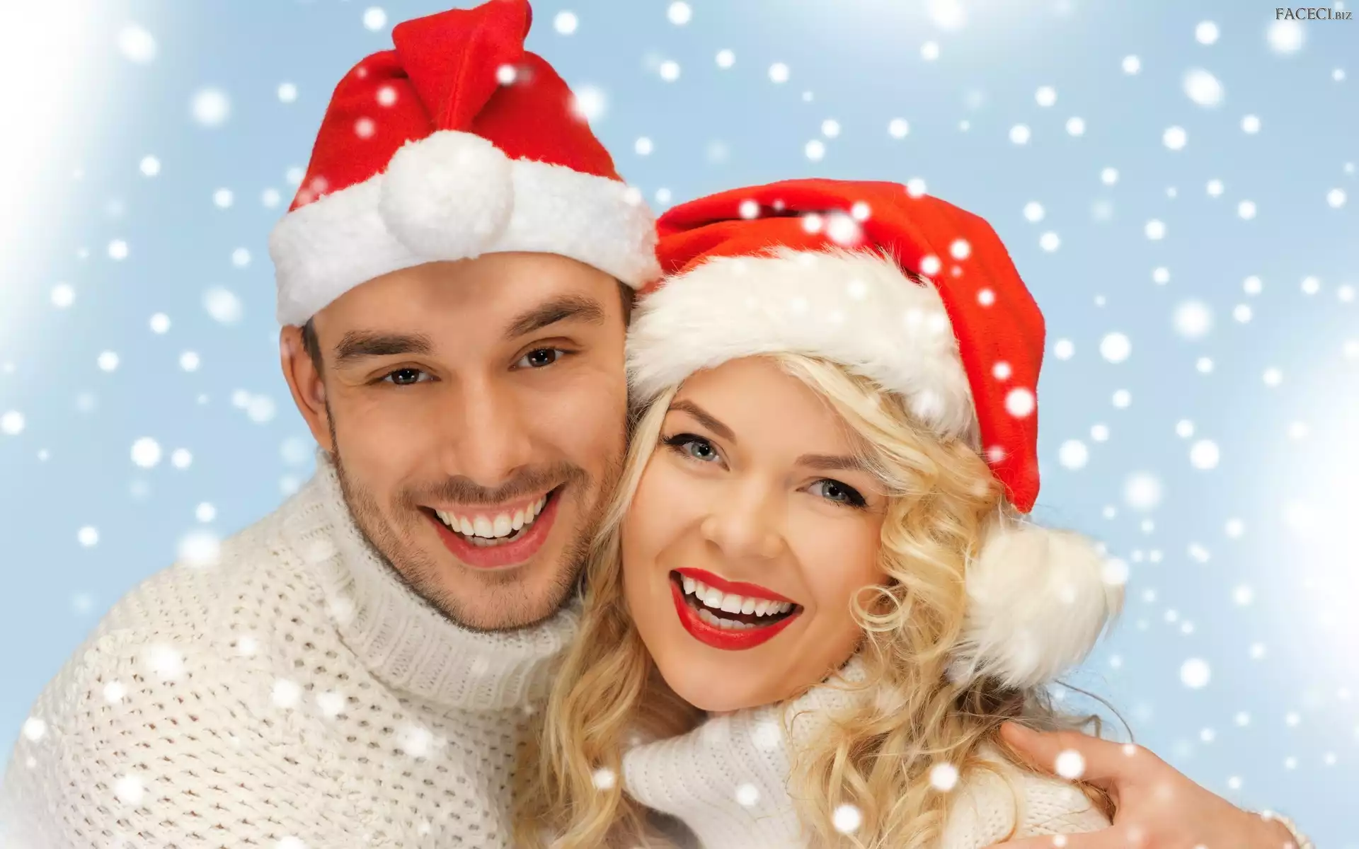 Uśmiech, Kobieta, Mikołaja, Czapki, Mężczyzna, Świąteczne - faceci.biz